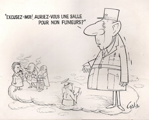 Charles de Gaulle Winston Churchill Joseph Stalin Franklin D. Roosevelt non-smoker original cartoon artwork