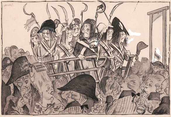Francois Mitterand defeated by Giscard d'Estaing in the French Presidential Elections original cartoon artwork