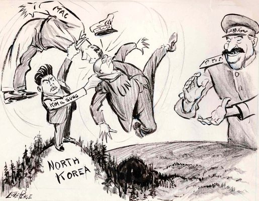 Korean War Kim Il Sung General Macarthur United Nations Stalin original cartoon artwork