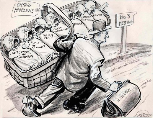 Harry Truman Potsdam Big Three original cartoon artwork