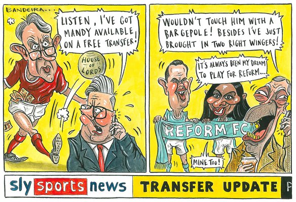 Keir Starmer Peter Mandelson Nigel Farage ReformUK Suella Braverman Robert Jenrick original cartoon artwork