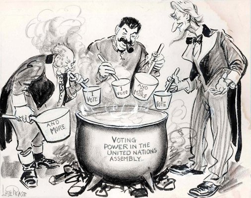 Uncle Sam John Bull United Nations Stalin original cartoon artwork