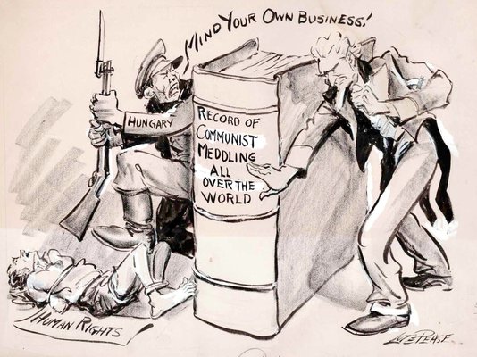 Soviet invasion of Hungary Uncle Sam Human Rights original cartoon artwork